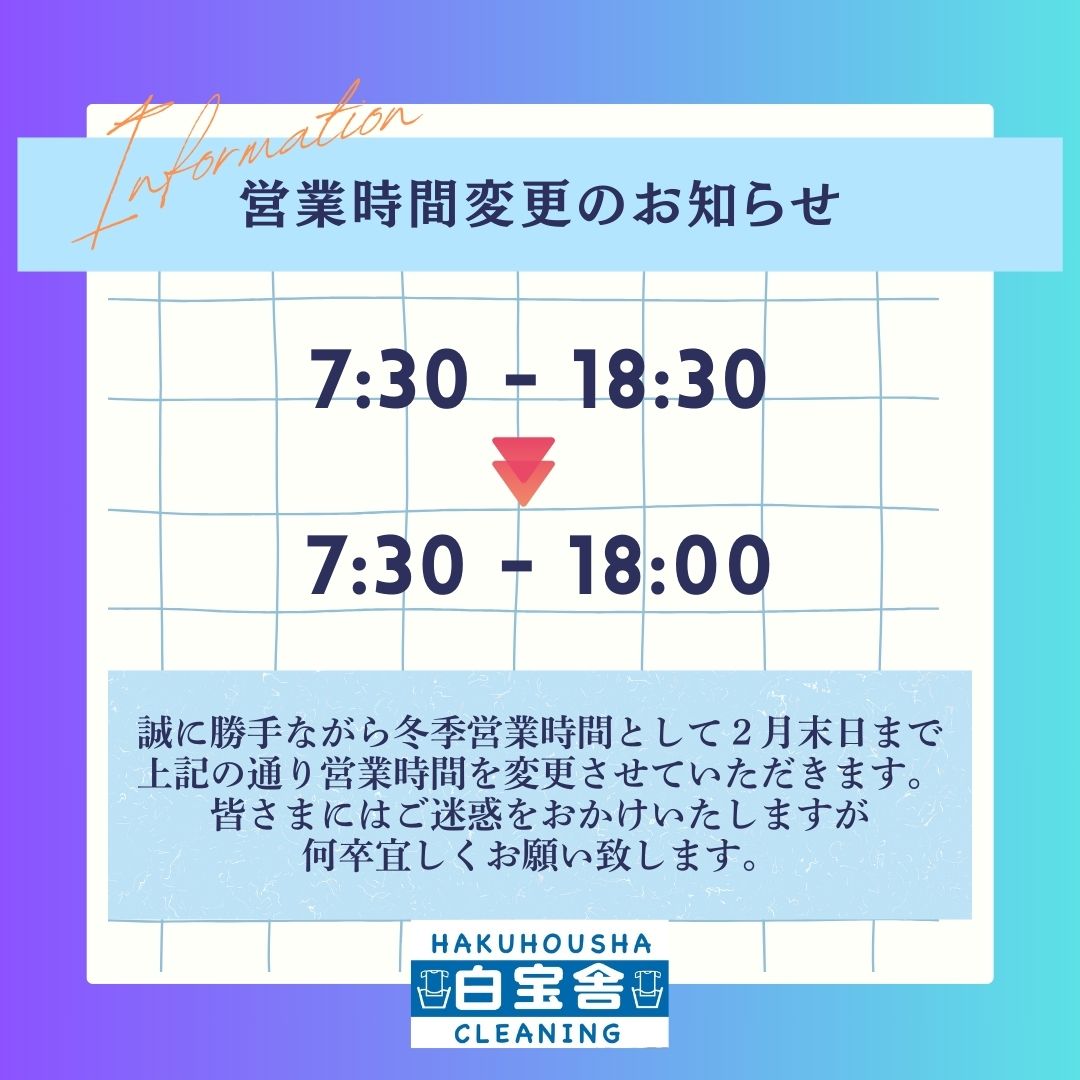 白宝舎クリーニング店は1月6日より今年の通常営業開始です👕